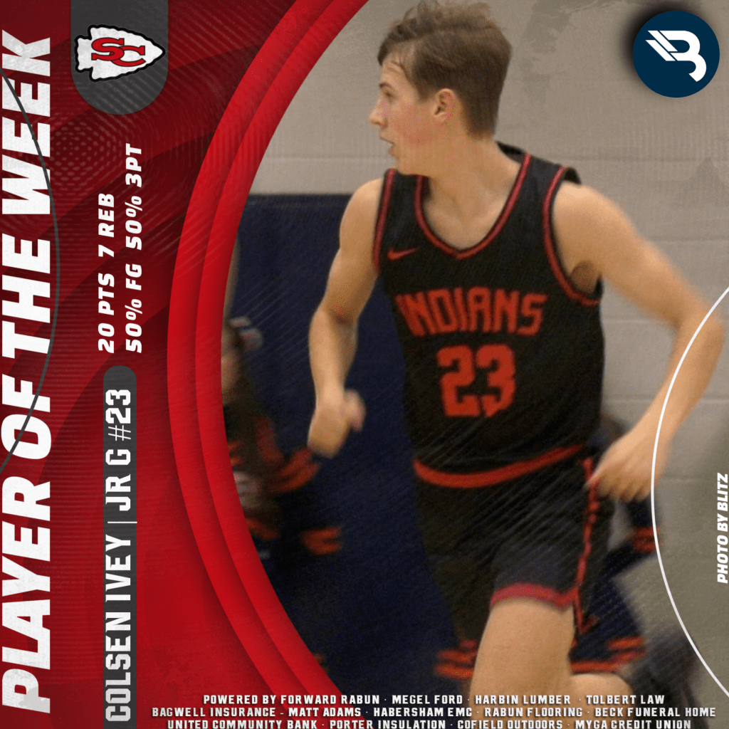 Colsen Ivey has proven to be an All-Region type of player over the last couple of seasons. The Stephens County junior guard can now add BLITZ POW to his resume. The Indians’ standout had 20 points, seven rebounds, and shot 50% from the floor and from long range in Stephens County’s game last week. For the season, Ivey averages 13.1 points and 6.1 rebounds per game.