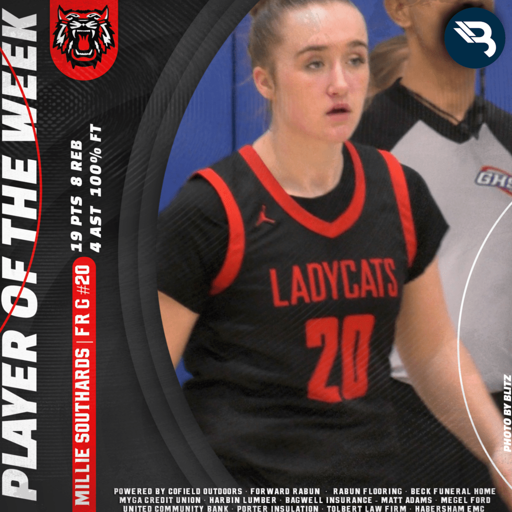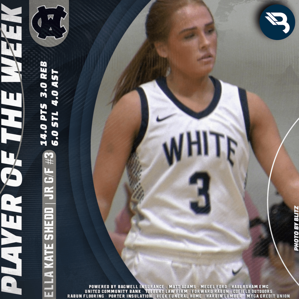 The BLITZ Girls Basketball Players of the Week are Ella Kate Shedd (White) and Millie Southards (Rabun). Shedd won the Fan Vote with 1,427 of the 2,238 total votes. Southards was the BLITZ Pick.