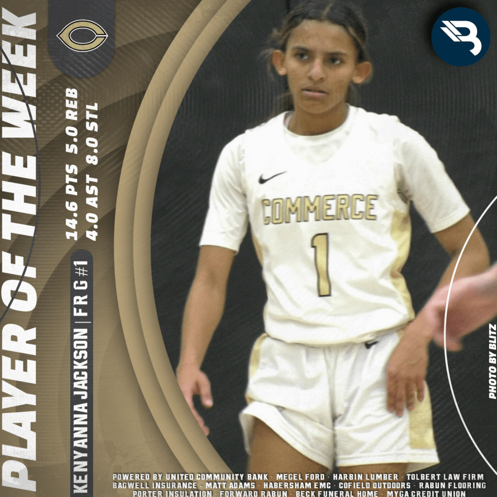 The BLITZ Girls Basketball Players of the Week are Ansley Moore (Banks), Kenyanna Jackson (Commerce), and Reagan Hays (Jefferson). Moore won the Fan Vote with 3,155 of the 7,202 total votes. Jackson and Hays were the BLITZ Picks.