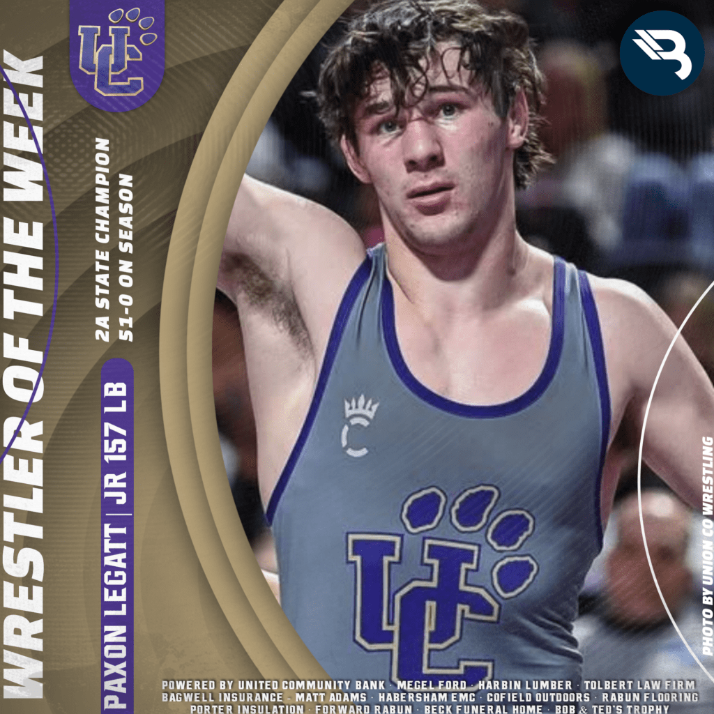 Union County junior Paxon Legatt topped off a 51-0 season with a state title individually. He won the 157-lb bracket with relative ease, and is a back-to-back champ!
