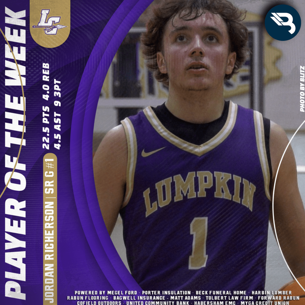 The BLITZ Boys Basketball Players of the Week are Aidan Beasley (Banks), Jordan Richerson (Lumpkin), and Tucker Engert (Towns). Beasley won the Fan Vote with 2,182 of the 6,058 total votes. Richerson and Engert were the BLITZ Picks.