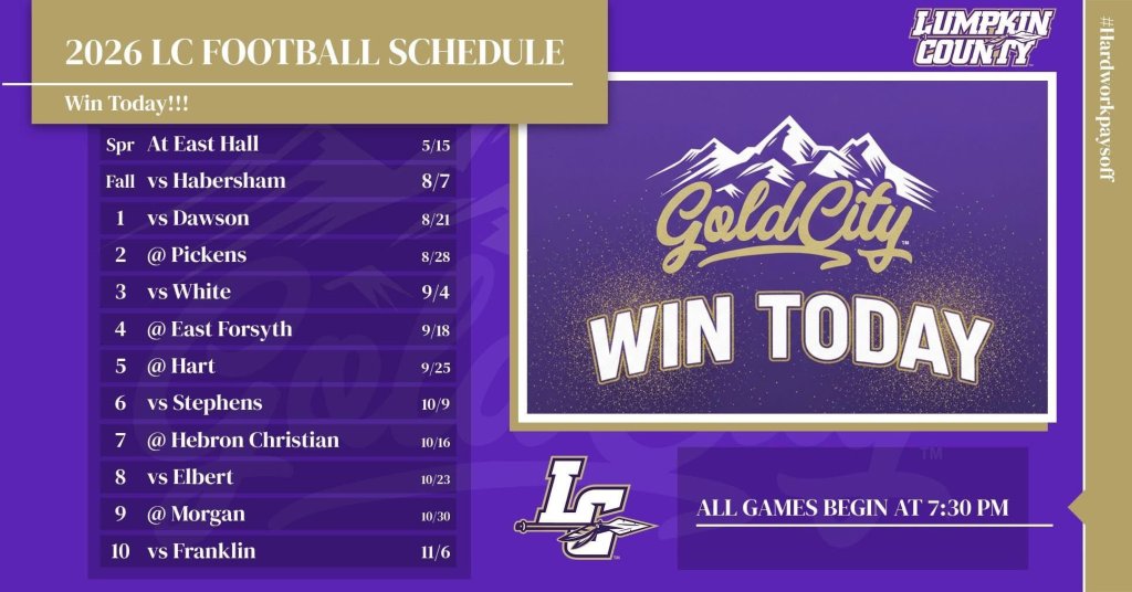 Lumpkin County has announced its 2026 Schedule. We dissect the slate, going game-by-game with our way-too-early predictions for the regular season. The following insight depends heavily on the known – returning or departing players, incoming players we know of, etc. The unknown is the other side of the same coin – some unknown up-and-coming middle school talent, JV standouts, move-ins, etc.