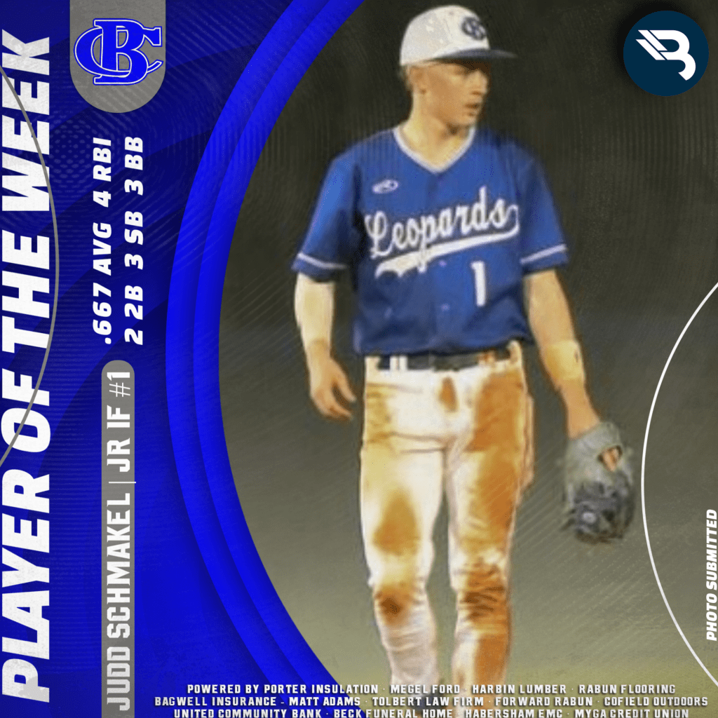 Banks County junior Judd Schmakel had a great stat line through three games for the Leopards. The infielder hit .667 (six hits), knocking in four runs while collecting two doubles, three stolen bases, and three walks. This is his first POW award.