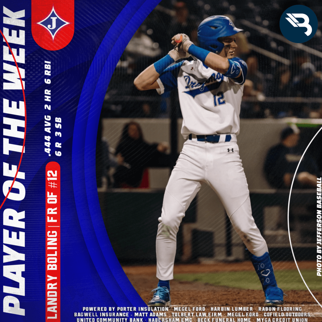 Dragons freshman phenom Landry Boling is at it again. For the second time this year, he earns POW honors. This time, the outfielder hit .444 with two round-trippers, six RBI, six runs, and three stolen bases.