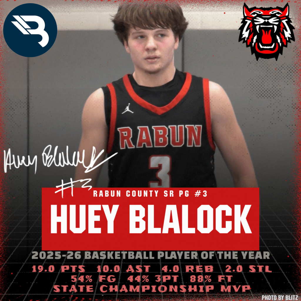 There’s zero doubt – from start to finish, Huey Blalock proved himself to be the best point guard in the entire state, and his legend grows as he adds BLITZ Player of the Year status to his long list of accolades.