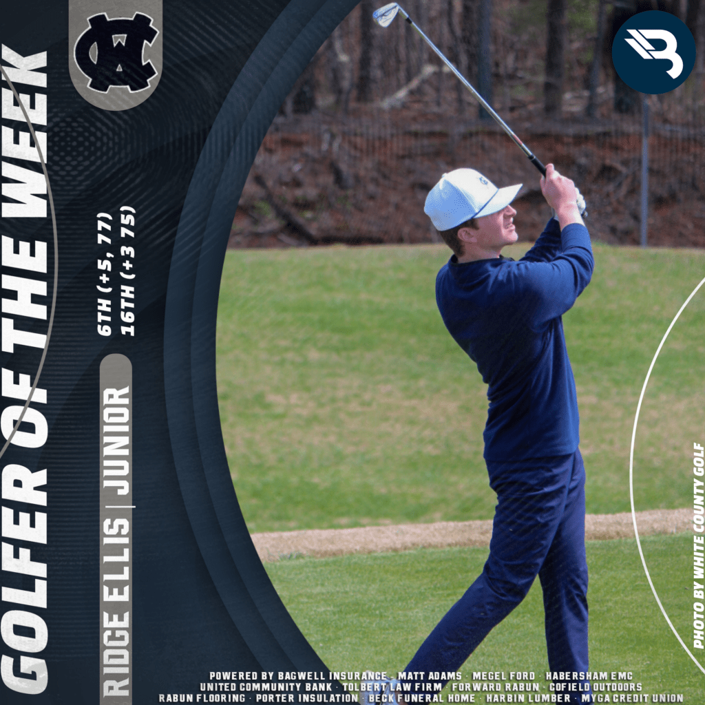 Ridge Ellis was a key part of the White County success last week. The junior golfer posted a 6th-place finish with a 5-over 77 at Apple Mountain. Then on the same course, he was 16th with a 3-over 75. This is his first POW award.