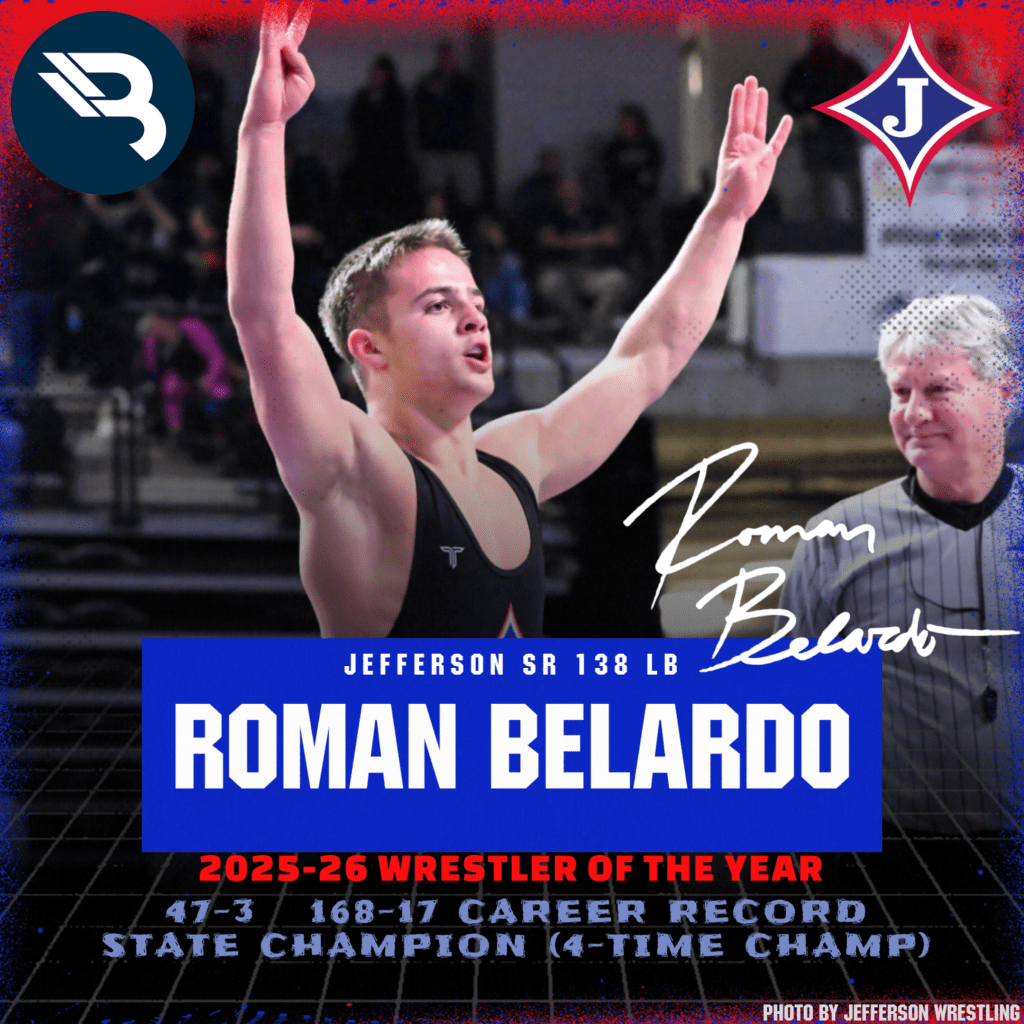 There’s never been a 4-time BLITZ Wrestler of the Year. Until now! Roman Belardo, a 4-time State Champion for Jefferson, continues to make history. The Appalachian State signee caps off his amazing high school career.