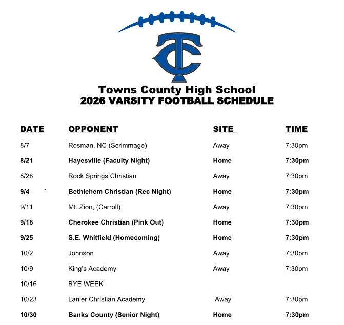 Towns County has announced its 2026 Schedule. We dissect the slate, going game-by-game with our way-too-early predictions for the regular season. The following insight depends heavily on the known – returning or departing players, incoming players we know of, etc. The unknown is the other side of the same coin – some unknown up-and-coming middle school talent, JV standouts, move-ins, etc.