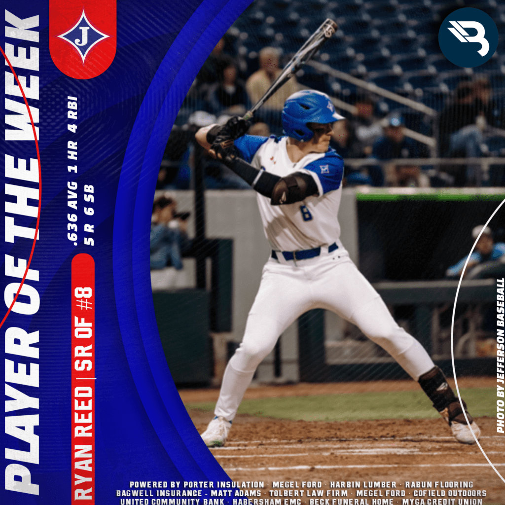 Ryan Reed’s solid senior season continues. The Jefferson Dragons’ outfielder hit .636 across three games, notching seven hits. That includes a homer, four RBI, five runs, and six stolen bases while securing his first POW award.