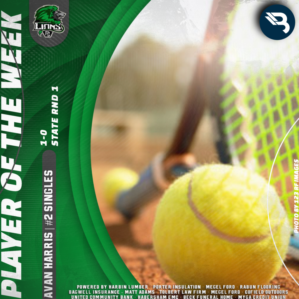 Avan Harris at 2-singles for Franklin won his match to help get the Lions into the Sweet 16. This is his first POW award.